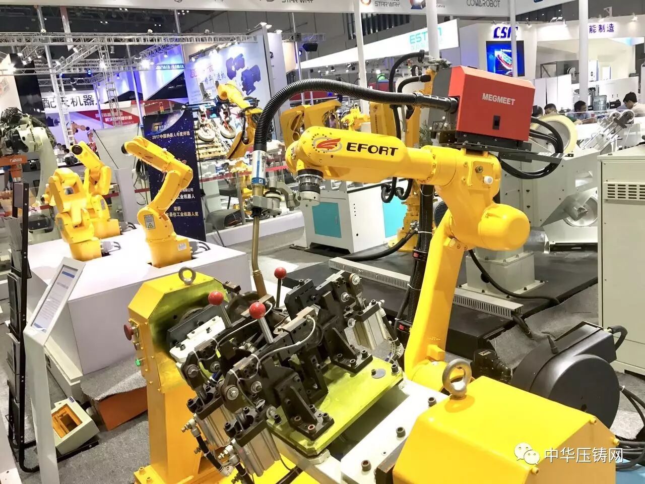 7.5-7.8四天,2017第6届中国国际机器人展览会在上海国家会展中心举办,汇聚了来自日本、德国、中国等全球领先的百家智能企业参展,其中以埃夫特(EFORT)智能装备股份有限公司为代表的13家安徽芜湖地区重点企业,通过418平米超大展台和30多件实物展品,成为本次展会规模最大的展区之一,更是客商和参观者关注的焦点区域。