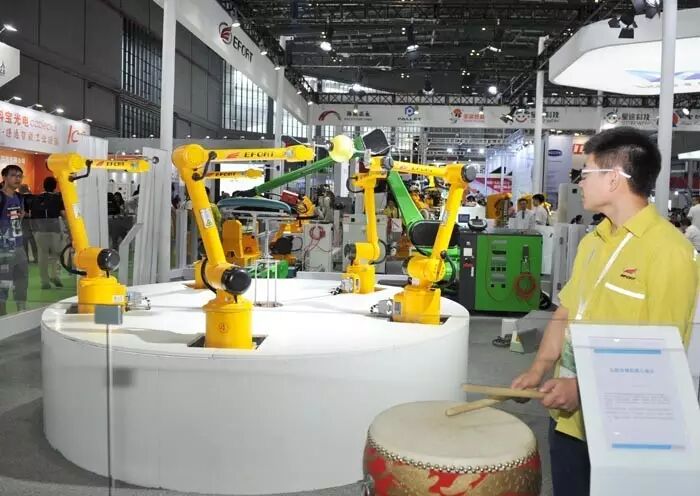 ▲埃夫特机械臂表演“击鼓传球”